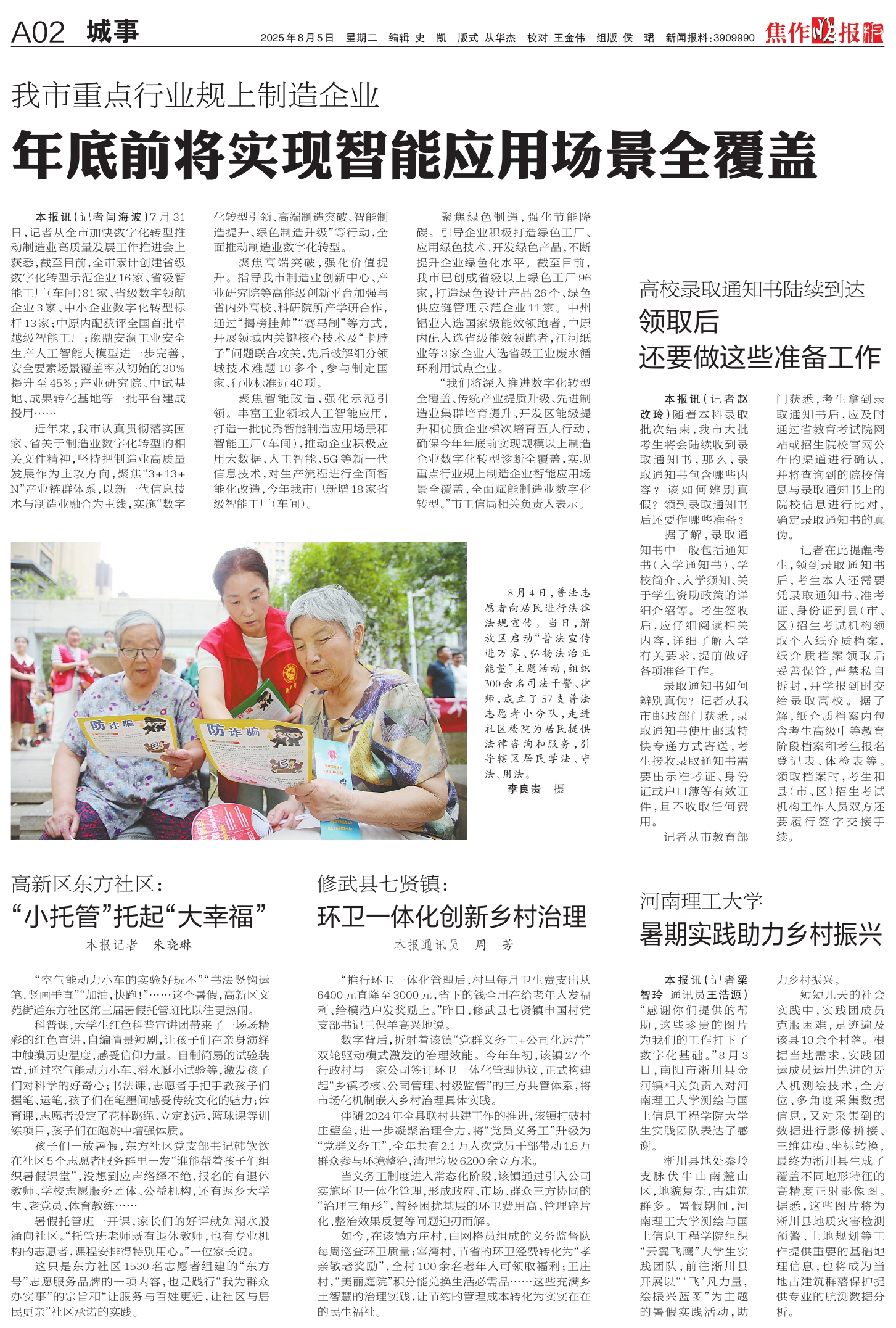 本报讯(记者梁智玲 通讯员王浩源)“感谢你们提供的帮助,这些珍贵的图片为我们的工作打下了数字化基础。”8月3日,南阳市淅川县金河镇相关负责人对河南理工大学测绘与国土信息工程学院大学生实践团队表达了感谢。